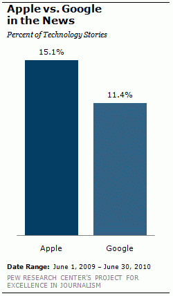 此外,對於企業的報導,大部分都是正面取向。以蘋果為例,相關報導中有42%將其描述為技術創新者,有27%讚揚它所擁有的死忠粉絲,僅有17%談到蘋果日前因產品出包(iPhone 4天線門)造成負面印象。對於Google,則有25%的報導是有關搜尋引擎的優異技術,但只有20%讚許它是技術創新者,低於蘋果。(編譯/范眠)